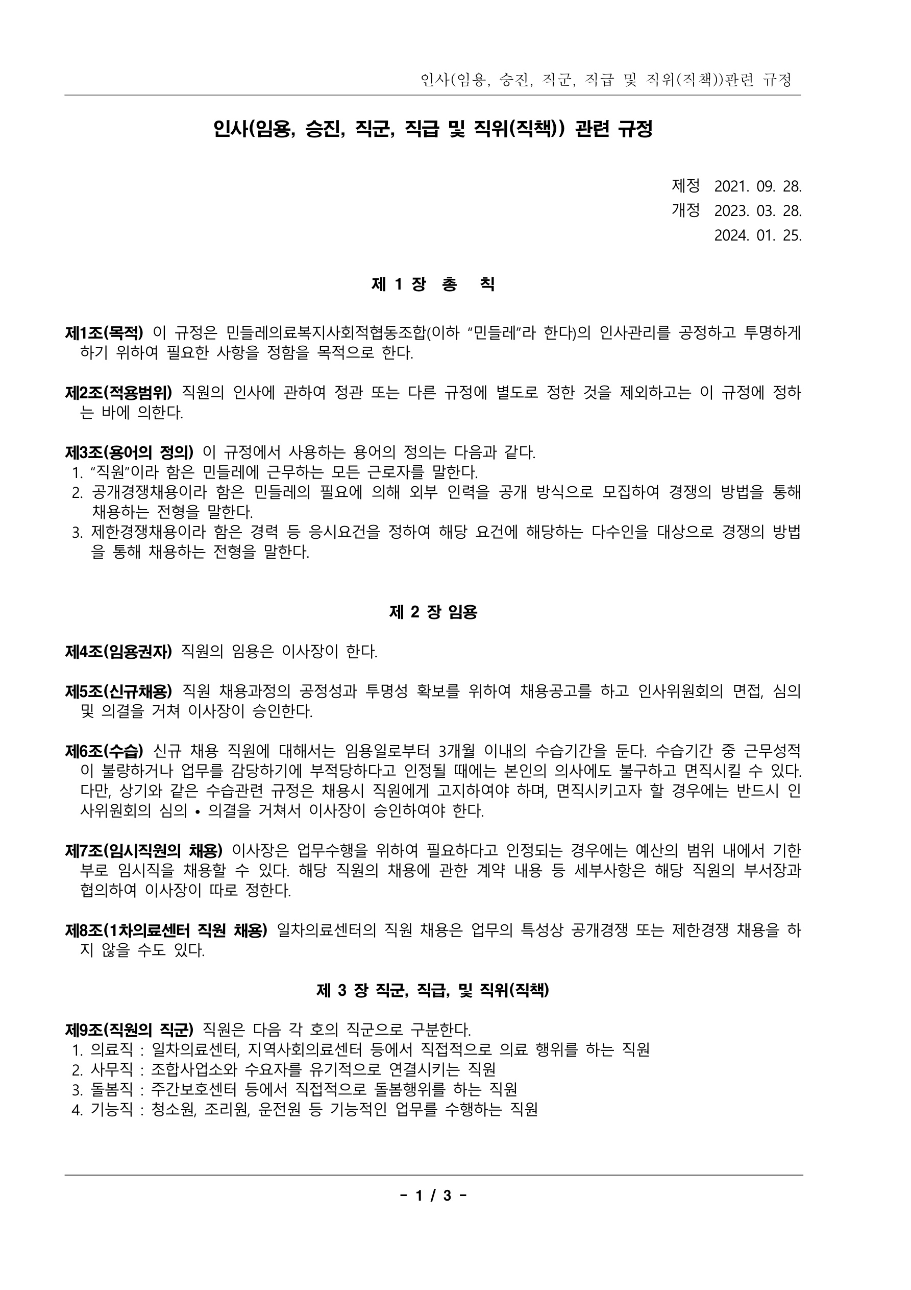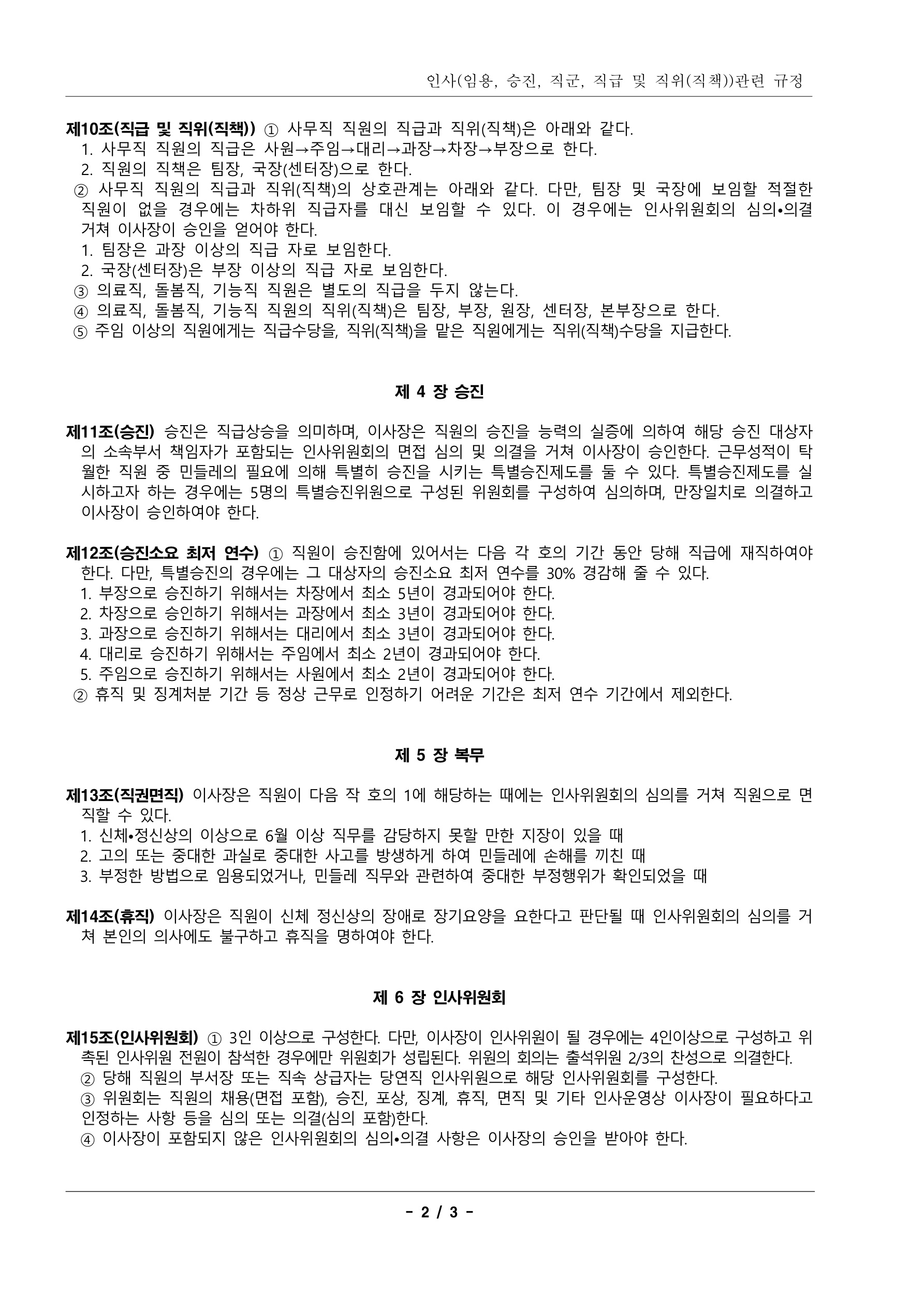 14.인사(임용, 승진, 직군, 직급 및 직위(직책)) 규정(2024.01.25 개정)
