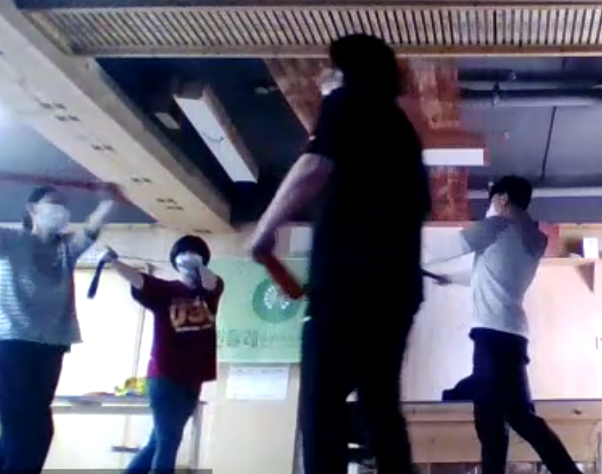 장애인체육회 선생님과 함께 운동을 함